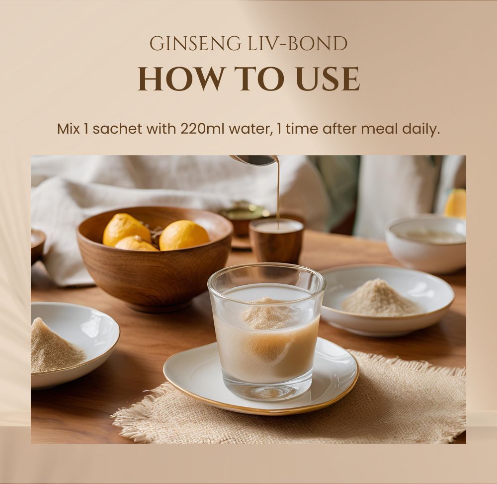 LIV-BOND comes in portable sachets, making it easy to incorporate into your daily routine. Simply mix 1 sachet with 220ml of water and consume once daily after a meal.