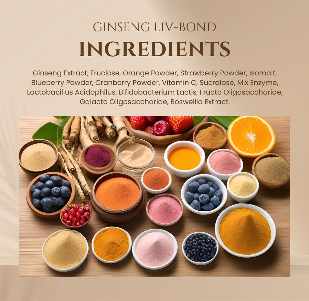 LIV-BOND Ginseng Extract Powder is specially formulated to promote bone health, enhance joint flexibility, and support long-term mobility. Powered by premium Ginseng Extract and a carefully selected blend of essential nutrients and vitamins, this advanced formula nourishes bones, improves circulation, and strengthens the body’s natural defences against osteoporosis and joint discomfort.